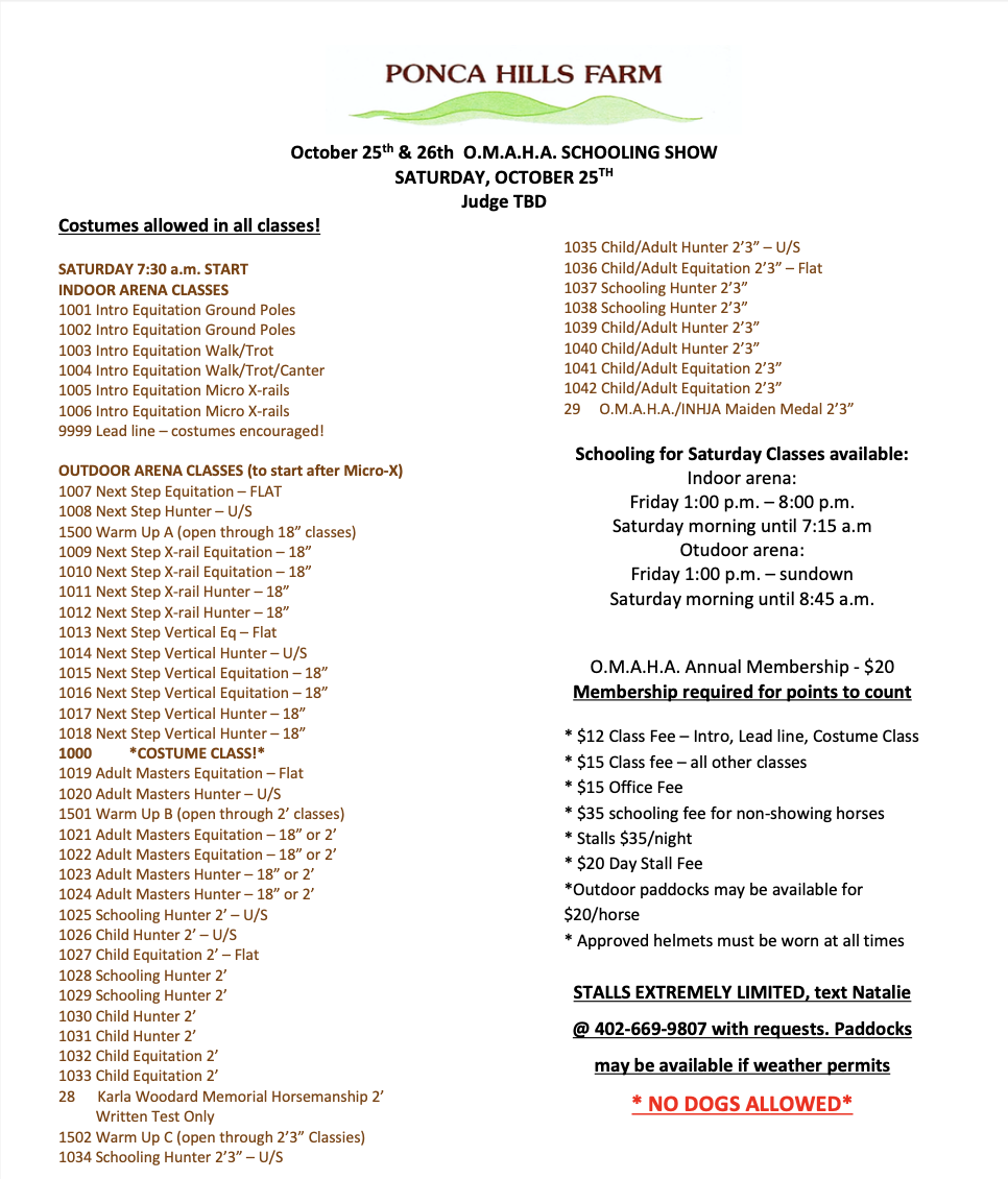 Join O.M.A.H.A. at Ponca Hills Farm located at 14605 N. 42nd St Omaha, NE 68112